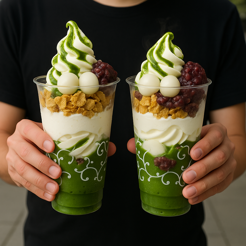 Silky matcha or hojicha soft serve (plus classic vanilla and swirls), finished with toppings like mochi, warabimochi, and chocolate crunch.